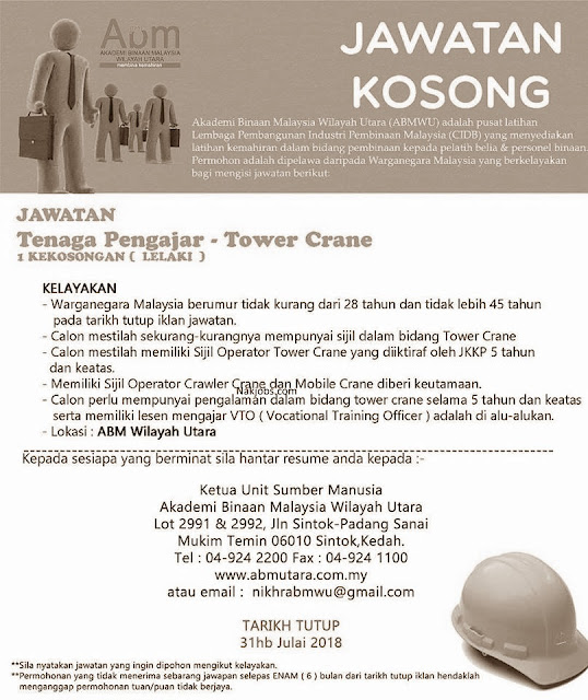 Jawatan Kosong Tenaga Pengajar Akademi Binaan Malaysia (ABM)