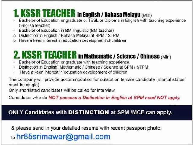 Teaching Vacancies for The Academic Year 2019 - Sarawak