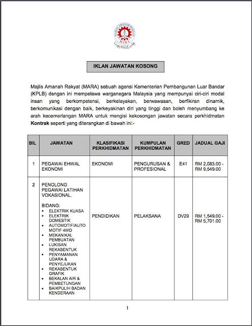 Iklan Jawatan Kosong Majlis Amanah Rakyat (MARA) 2018