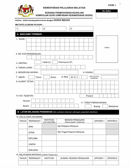 Borang Permohonan Keahlian Kumpulan Guru Simpanan Kebangsaan (KGSK)