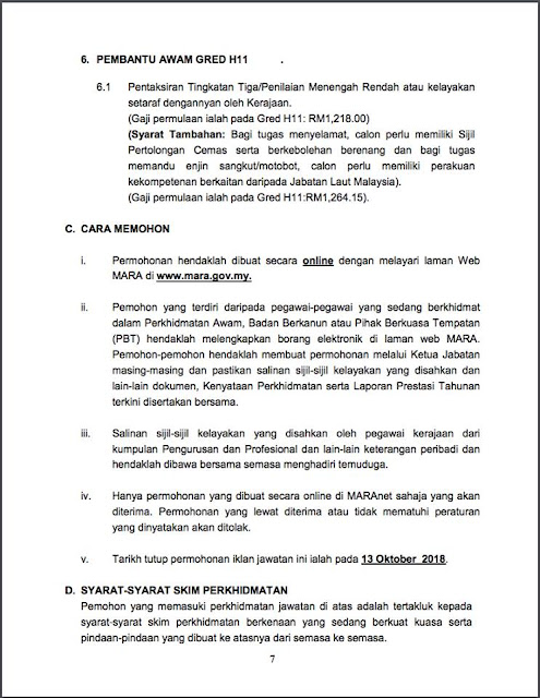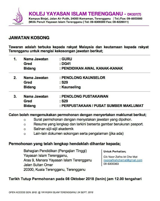 Tarikh tutup permohonan : 05 OKTOBER 2018